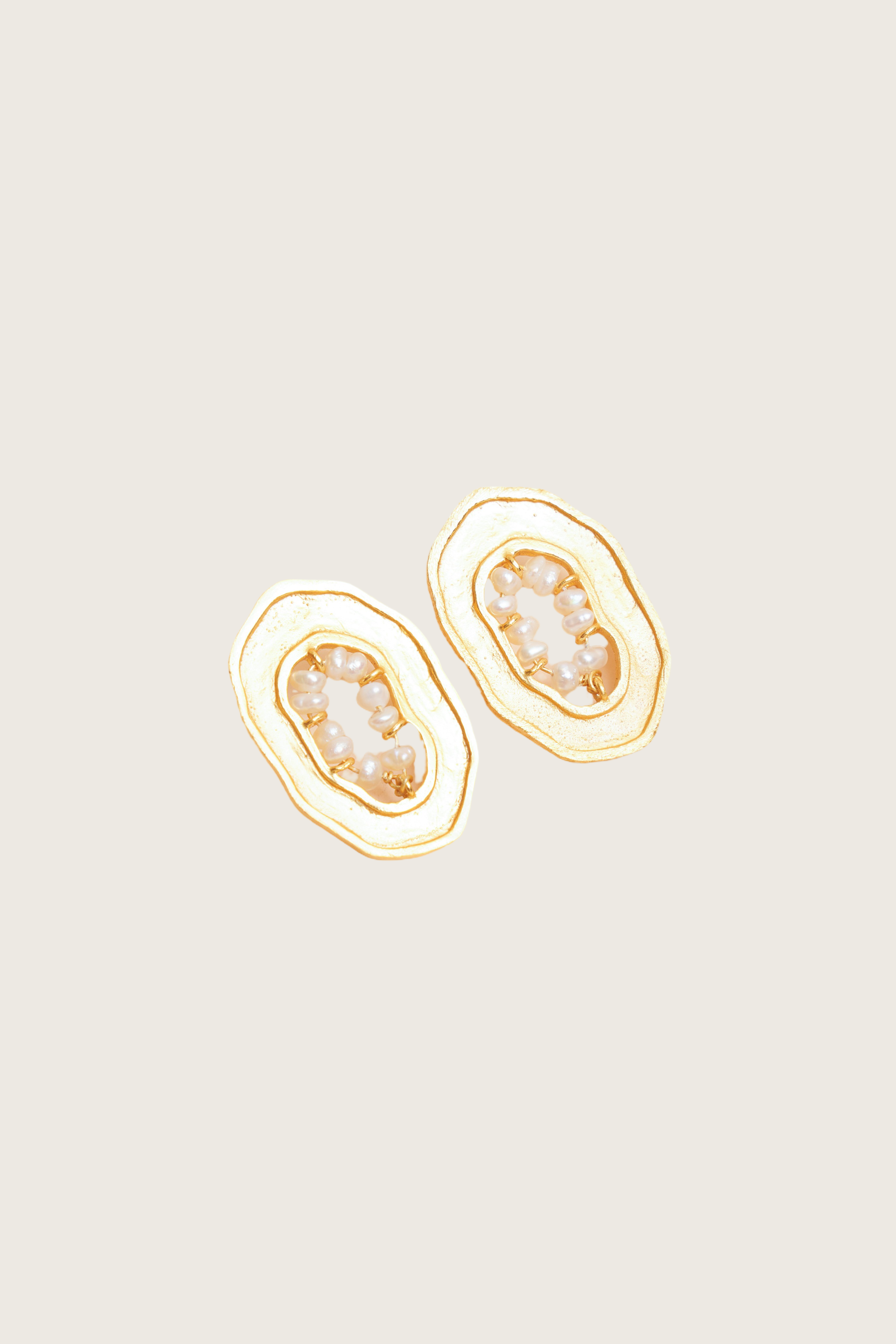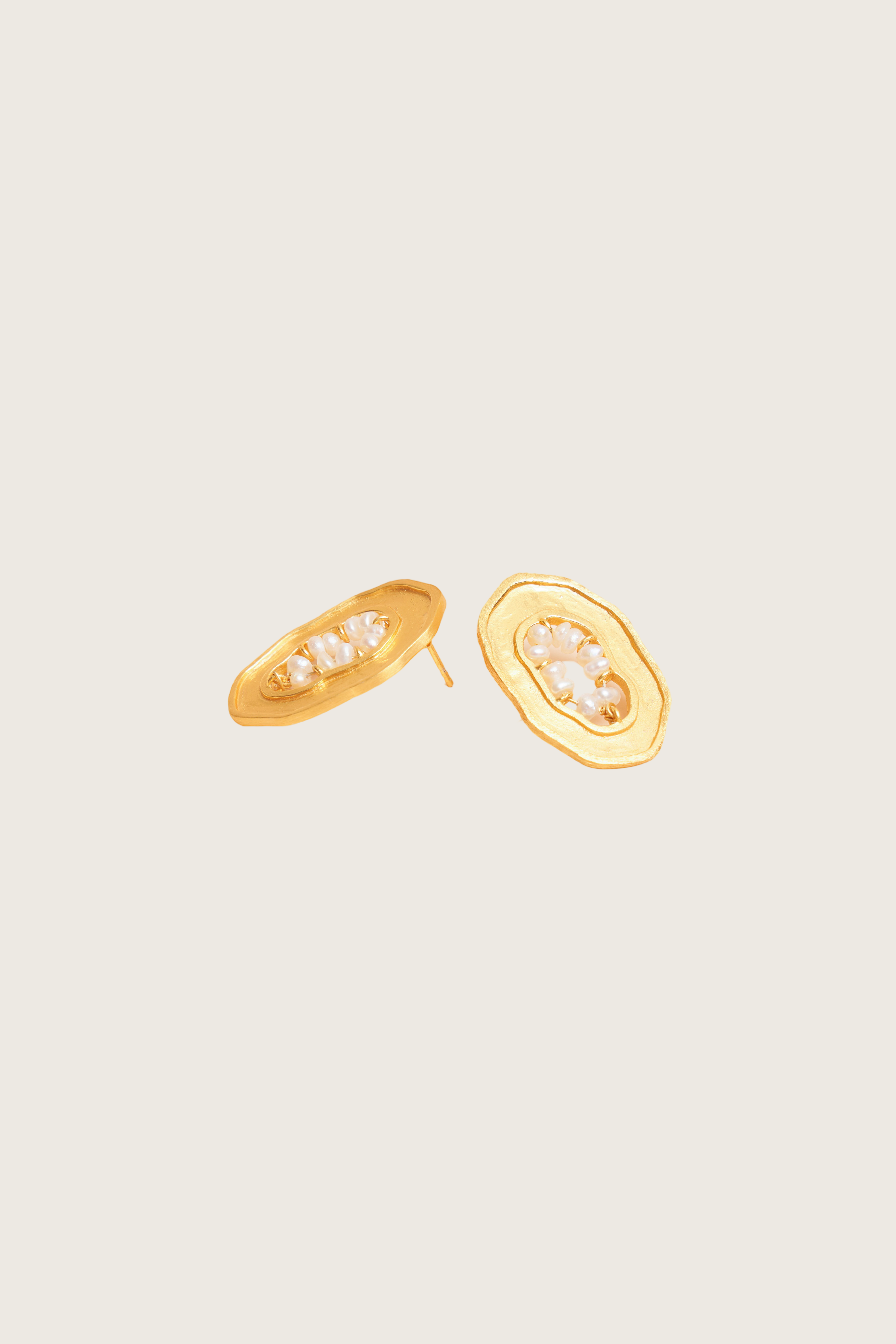 - material brass based earring with 18 karat gold inlay and sterling silver pin
